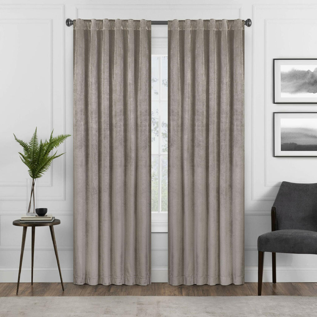Find the perfect combination of fashion and function with the Eclipse Harper window curtain panel. These beautiful panels offer Absolute Zero 100% blackout benefits with a premium thermal lining that gives this panel a rich hand and provides luxurious drapability. This transitional 100% blackout panel features a solid velvet fabric in jewel tones which makes it versatile and perfect for the bedroom, living room, or any room in your home and allows you to enjoy all of the light-blocking, noise reducing and energy saving benefits. Each panel measures 50 inches wide in your choice of 63, 84, 95, or 108 inches long. 3 inch rod pocket accommodates up to a 2 inch rod. Curtain rod sold separately. Reverse of panel is light grey. 100% Polyester, lined panel. Machine washable.