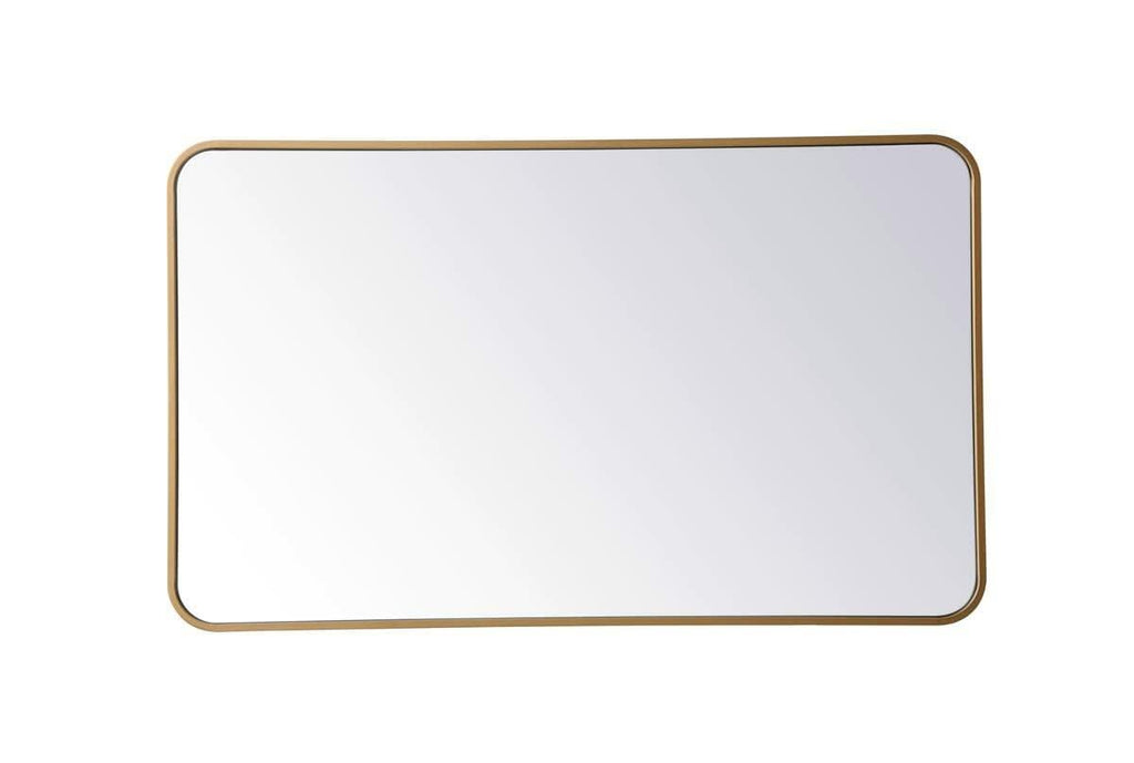 Enhance the appeal of your home or office with this modern mirror, featuring a thin rounded metal edges in a deep profile, reflecting a minimalist's design and trendy styling. To ensure your home safety, we used four metal hanger ring that are securely welded to the back of the metal frame, which sit on top of the frame for easy hanging. We recommend using suitable heavy duty picture/mirror hooks, selecting the best type of fixing for the particular wall you wish to hang the mirror on, using the appropriate rawl plug if required. Features: - Materials: MDF, glass and metal - Finish: Brass - Mirror is recessed into the thin metal frame - The mirror comes with a solid MDF board backing and four welded hanger for easy installation - Hand polished edges ensures timeless decor - Clear glass mirror - Mounts vertically and horizontally - Smooth rounded corners add an interesting visual accent - Rectangle shape Specifications: - Product Dimensions: 40"H x 24"W x 1"D - Product Weight: 18 lbs - Warranty: 1 year limited
