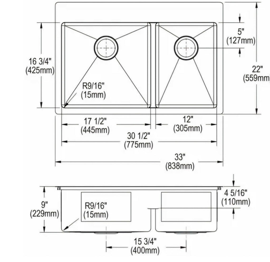The sink is part of the Crosstown collection and comes with a California Prop 65 warning. It is manufactured in the United States and has features such as a side-to-side width of 33 inches and a front-to-back length of 33 inches. This sink is perfect for those looking for a reliable and stylish addition to their kitchen.