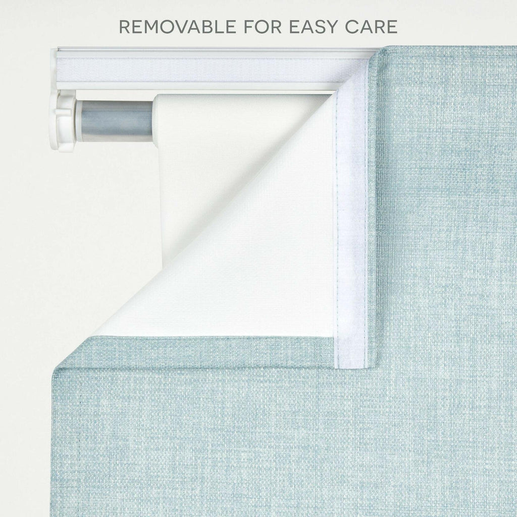 The Exclusive Home Acadia 100% Blackout Roman Shade is designed with a linen look fabric and offers an upscale look for any space. This blackout shade provides maximum privacy and is easy to install. Hang it with an inside mount for a cleaner look, or with an outside mount for 100% blackout, adding 2 to 6 inches to the window recess width for total blackout. Pull the shade up and down easily with the attached handle. The hook-and-loop top allows for easy removal of your shade for easy cleaning.