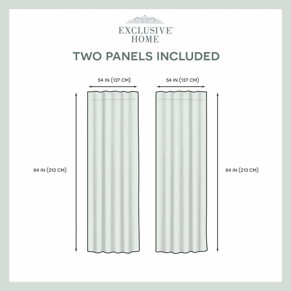- Includes: Two (2) curtain panels, each measuring: 54"W x 84"L