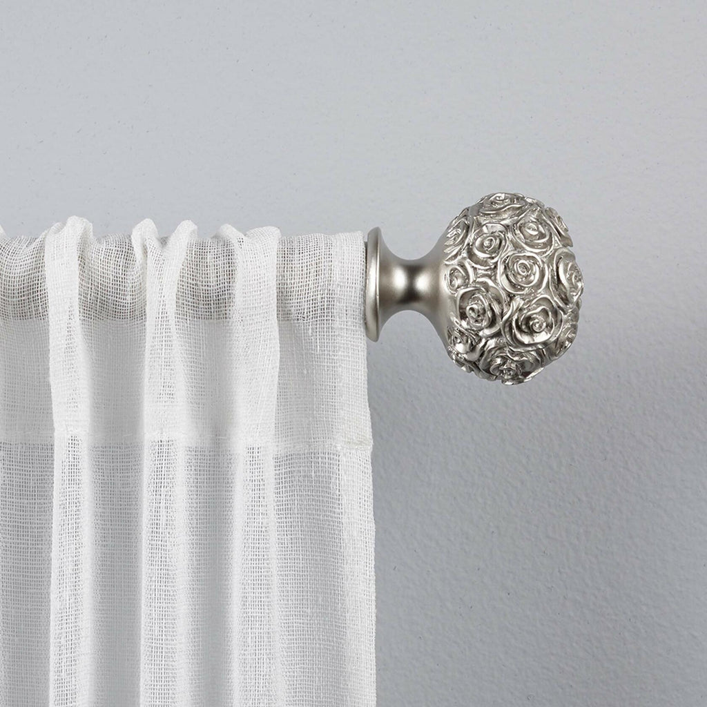 - ROMANTIC DESIGN: The Exclusive Home Peony curtain rod and finial set offers romantic style for your space with a floral design. Carved-look peonies in sphere-shaped finials cap the matching curtain rod.