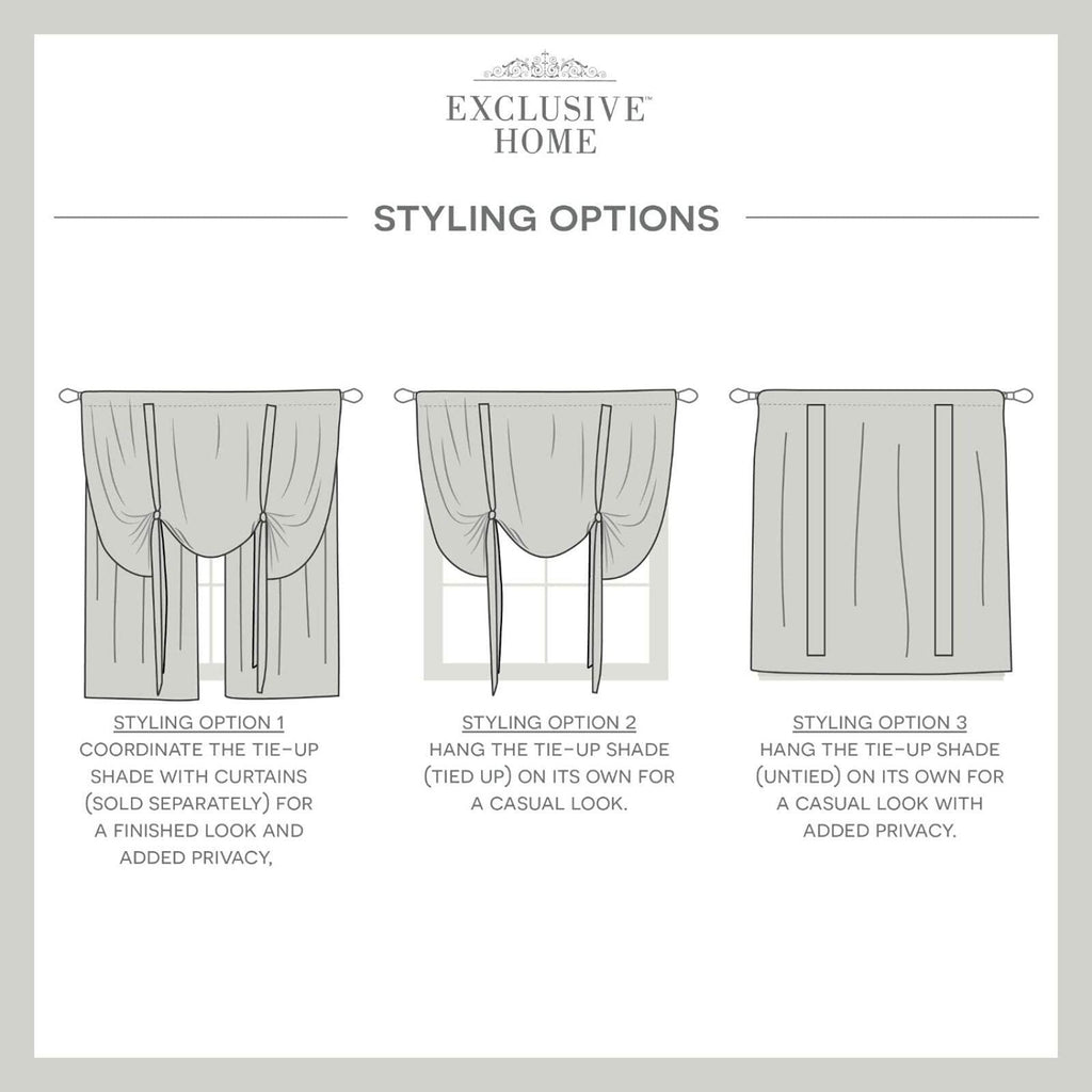 The Loha light-filtering tie up shade by Exclusive Home Curtains is made with a lightweight and airy, linen-like fabric that allows some natural light to shine through and has an elegant look. Featuring four attached ties to tie up your shade for a ruched look. The rod pocket top fits up to a 1-1/2" diameter curtain rod for hanging. Machine washable for easy care. This tie up shade can be coordinated with our Loha Tier Pair and Loha curtain panels (sold separately) or used on its own.