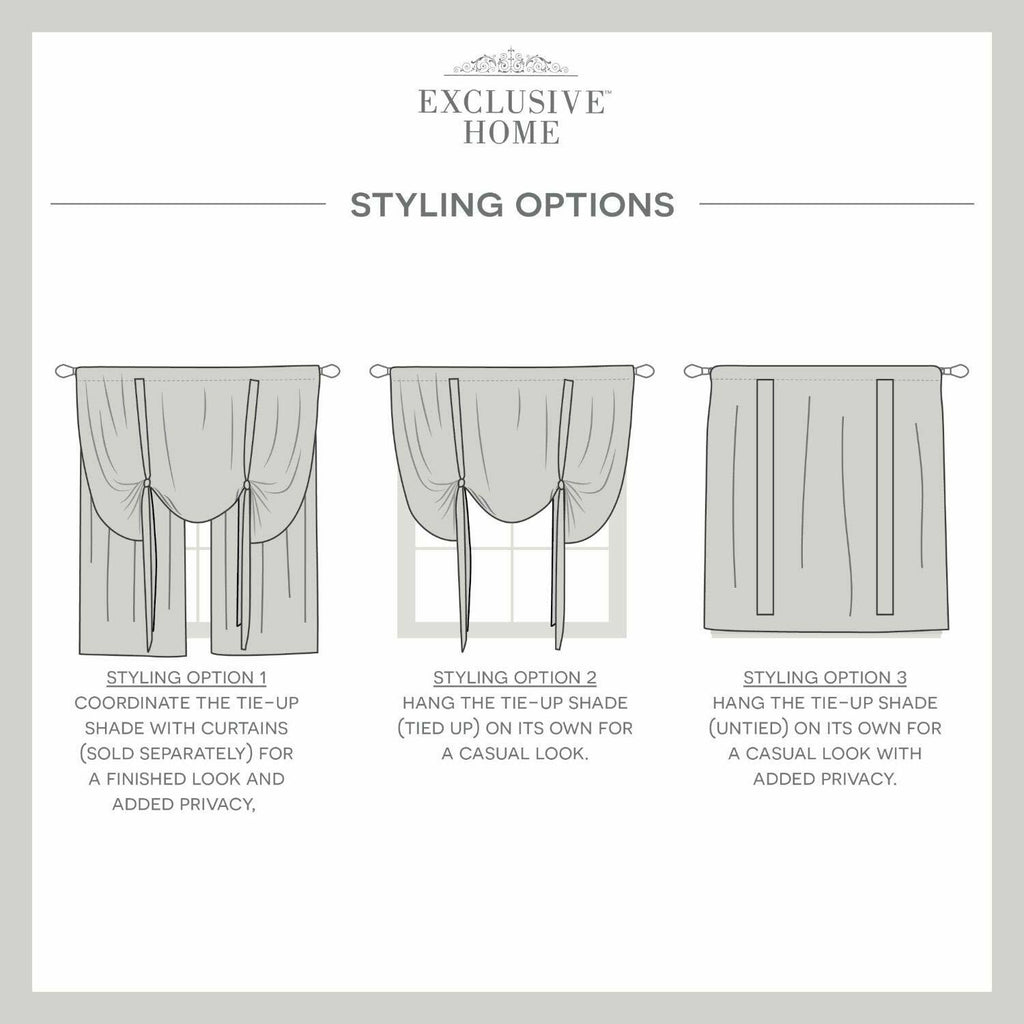 The Loha light-filtering tie up shade by Exclusive Home Curtains is made with a lightweight and airy, linen-like fabric that allows some natural light to shine through and has an elegant look. Featuring four attached ties to tie up your shade for a ruched look. The rod pocket top fits up to a 1-1/2" diameter curtain rod for hanging. Machine washable for easy care. This tie up shade can be coordinated with our Loha Tier Pair and Loha curtain panels (sold separately) or used on its own.