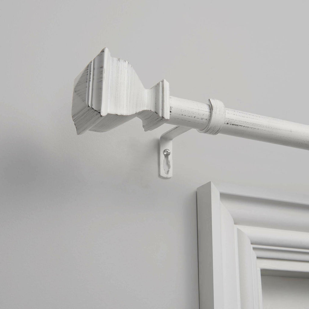 The Napoleon decorative curtain rod and finial set features a classic style and timeless design with a matte finish iron rod and coordinating cast resin, square post cap look finials. This set will provide a visually balanced appearance for your window treatments. The 2.4" square x 4" long finials will insure that your window curtain panels will remain securely on the rod. The 1" diameter iron adjustable curtain rod is designed to fit a wide range of window widths, and has a sturdy 25 lb. capacity that will support flowing sheers to thermal blackout panels. The 3.5" fixed depth projection bracket provides a gracious amount of space for fabrics to drape perfectly. Accommodates window curtain panels and drapes that are designed with various tops, including: rod pocket, pinch pleat, clip rings, grommets, tab top, or hidden back tab top. Provides an attractive accent to every window treatment in your living room, bed room, bathroom, kitchen, and kids room. Installs easily with included hardware and installation instructions. Sturdy, easy clean, no fuss, wipe clean finish will last for lifetime. This window curtain rod and finial set will add the perfect finish accent to any window treatment and adds a refined style to your home decor.