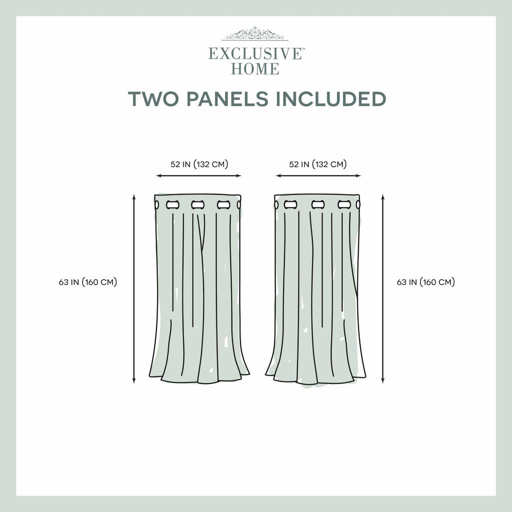 - SET OF TWO CURTAIN PANELS: Includes two (2) curtain panels, each measuring 52"W x 63"L. For proper look and fullness, the curtain panels should measure 2-3 times the width of your window/opening.