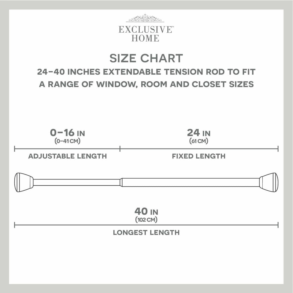 Hang your favorite window curtains or divide any room within minutes with the Exclusive Home Tension Rod. This steel spring rod is adjustable to extend from 24" to 40". The top-quality, durable construction is made to hold everything from airy drapes to heavyweight blackout curtains. No drill is needed to install this sturdy spring rod. Simply extend and twist the rod to install. The iron end caps both have rubber grips so the rod can be used on all surfaces.