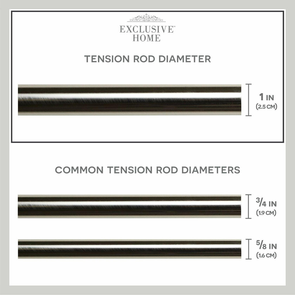 - STURDY & TOP QUALITY CONSTRUCTION: Exclusive Home steel spring tension rods measure 1" diameter and are made to hold everything from airy drapes to heavyweight blackout curtain panels. The durable end caps are made of iron and measure 1.5" diameter.