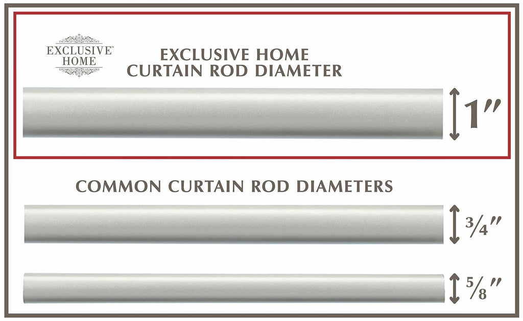 Product Description The Topper decorative curtain rod and finial set features a simple, classic style and traditional design with a matte finish iron rod and coordinating wood plastic button end cap finials. This set will provide a visually balanced appearance for your window treatments. The 1.6" diameter x 0.7" long finials will insure that your window curtain panels will remain securely on the rod. The 1" diameter iron adjustable curtain rod is designed to fit a wide range of window widths, and has a sturdy 25 lb. capacity that will support flowing sheers to thermal blackout panels. The 3.5" fixed depth projection bracket provides a gracious amount of space for fabrics to drape perfectly. Accommodates window curtain panels and drapes that are designed with various tops, including: rod pocket, pinch pleat, clip rings, grommets, tab top, or hidden back tab top. Provides an attractive accent to every window treatment in your living room, bed room, bathroom, kitchen, and kids room. Installs easily with included hardware and installation instructions. Sturdy, easy clean, no fuss, wipe clean finish will last for lifetime. This window curtain rod and finial set will add the perfect finish accent to any window treatment and adds a refined style to your home decor. From the Manufacturer Exclusive Home is North America's leading supplier of home textiles, ready-made drapery, and window curtain hardware. We provide superbly crafted products that are affordable, yet luxurious, and are unsurpassed in quality and construction. Our window treatments are designed with timeless beauty in mind. We deliver high fashion designs and patterns, varying textures and fabrics, as well as a myriad of colors that today's discerning consumers expects. Exclusive Home window treatments are available in an array of fabric constructions including jacquard, linen, burlap, sheer, thermal/blackout, silk, faux silk, polyester, poly blends, cotton, and cotton blends. These fabric constructions are offered in varying designs and colors including classic solids, prints, textures, thickness, lengths, widths, and burnouts. Our window hardware is designed for that perfect finishing touch. You will find our window decor designs to be contemporary styles blended with timeless beauty to add a sophisticated feel to any room. Constructed from durable iron metal with various color finishes, our window hardware is sure to last a lifetime. From classic to contemporary designs and today's top fashion trends, you are sure to find that Exclusive Home textiles, drapery and window hardware will fit any look, mood, or style. Like millions of customers already have, let our designs be the anchor for each room in your home!