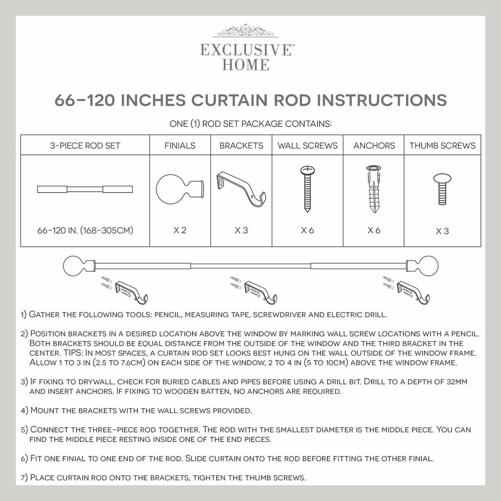 - ADJUSTABLE DESIGN: This curtain rod is adjustable in length and extends from 66 to 120 inches. It will accommodate a wide range of window widths and types.