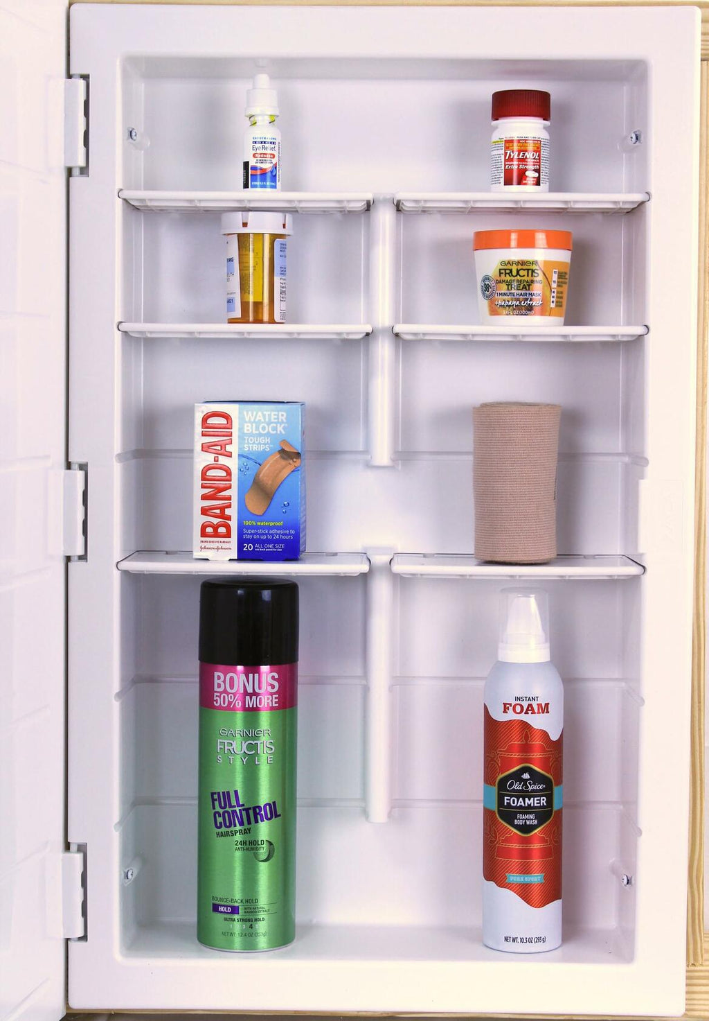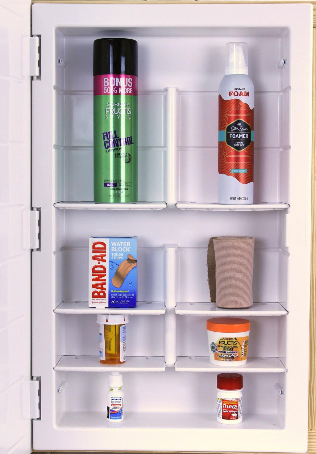 The HomeSelects medicine cabinet was designed to solve all of the flaws found in other cabinet designs. Innovation in technology, higher quality materials, and great engineering and manufacturing, means a best-in-class fixture. Other cabinets made of metal components with exposed seams will begin to rust over time when repeatedly exposed to moisture. The high-quality polymer materials ensure the HomeSelects medicine cabinet will never rust - regardless of use or repeated exposure to humidity. The patented award-winning modular shelving system allows for seamless configuration for your individual storage demands. Adjust for height & length of shelves for those "hard to fit" items, integrate shelves with openings for toothbrushes or scissors, and enjoy adjustable shelve depths for items that don't typically fit with other cab designs. Enjoy the flexibility of being able to easily replace the doors, change which side the door mounts on the door are mounted on, install recessed within the wall, or (with the addition of the surface mount kit), flush mount your cabinet on the wall. Advanced hinge design means smooth and quiet operation. High-quality polymer materials prevent rust and corrosion. The cabinets were designed with the ease of installation in mind.