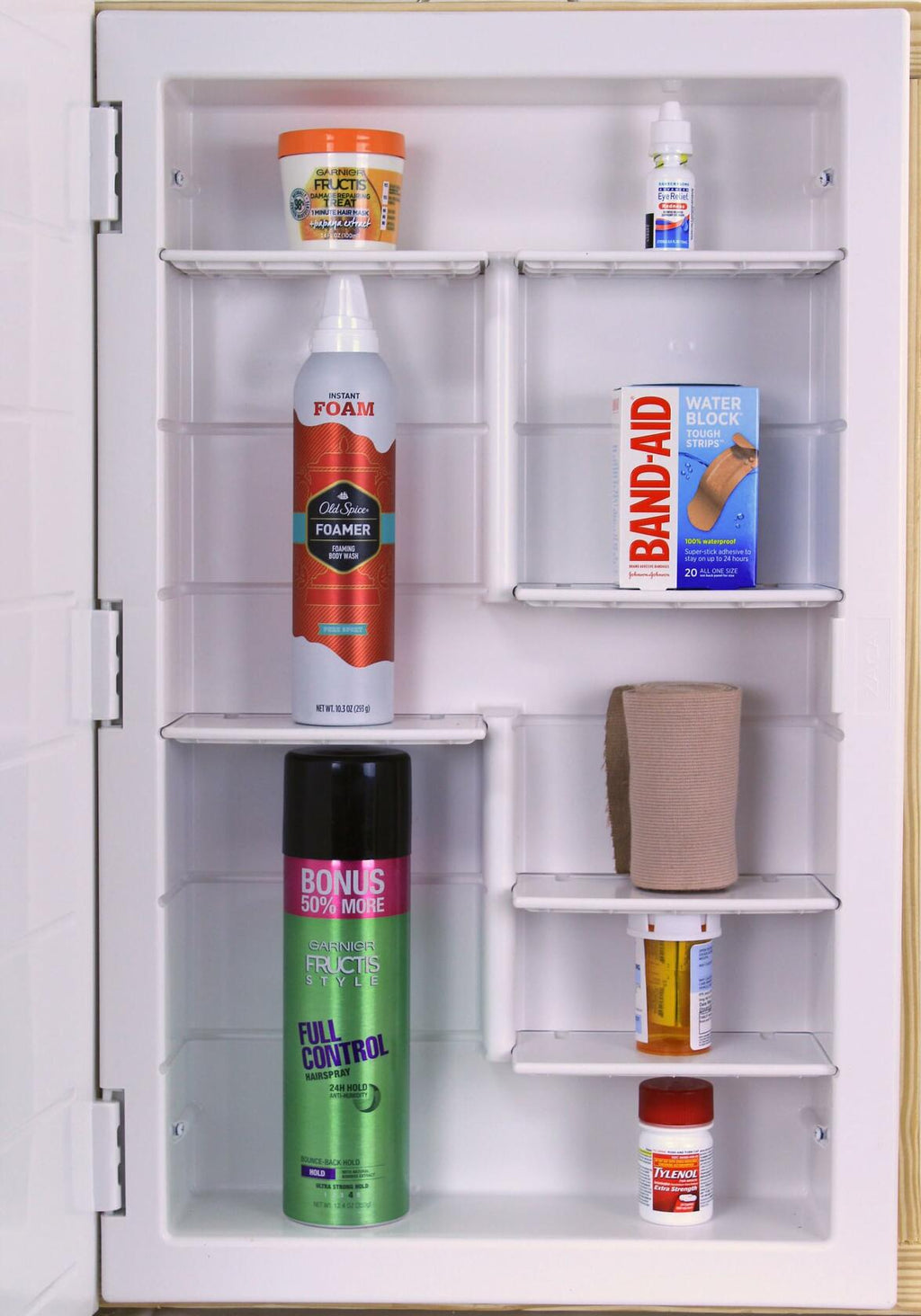 - All HomeSelects Medicine Cabinets are reversible-simply remove the shelves, mount the cabinet in the desired location with proper swing, and install shelves.