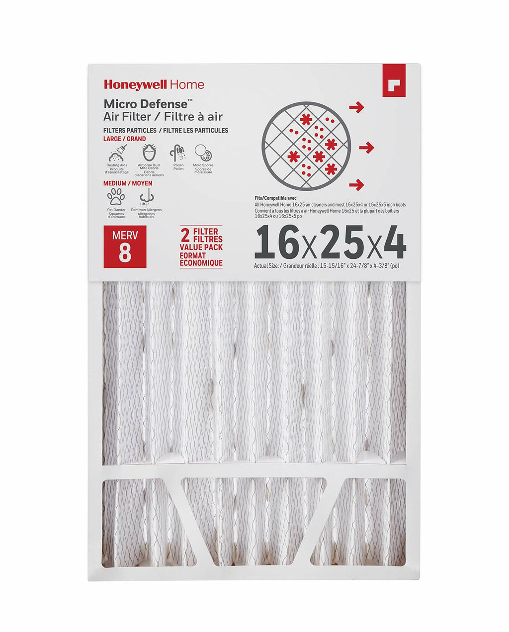 Honeywell Home MicroDefense AC Furnace Air Filter 16 x 25 x 4 MERV 8 (2 pk)