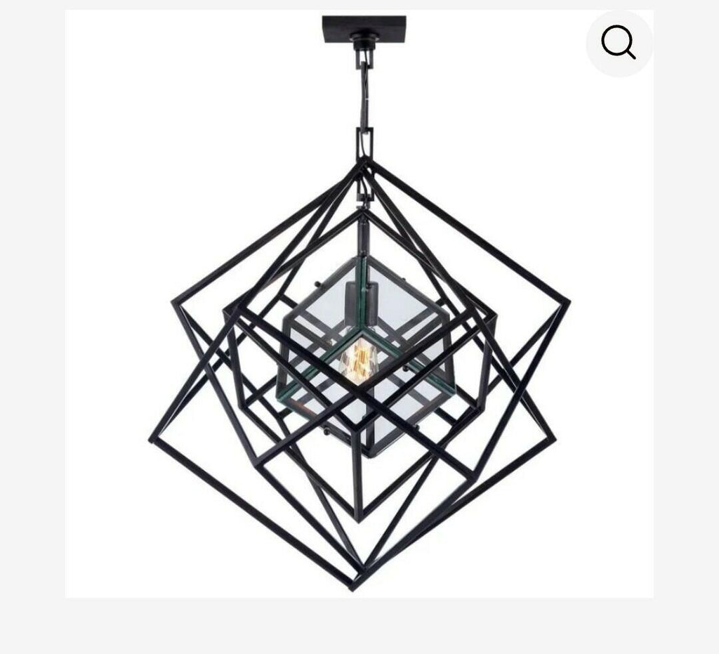 Introducing a stunning Kelly Wearstler light chandelier, perfect for any modern home. This beautiful piece features a unique cubist design and is made of aged iron, giving it a stylish and vintage feel. The chandelier also comes with a light sensor, making it easy to turn on and off with just a touch.