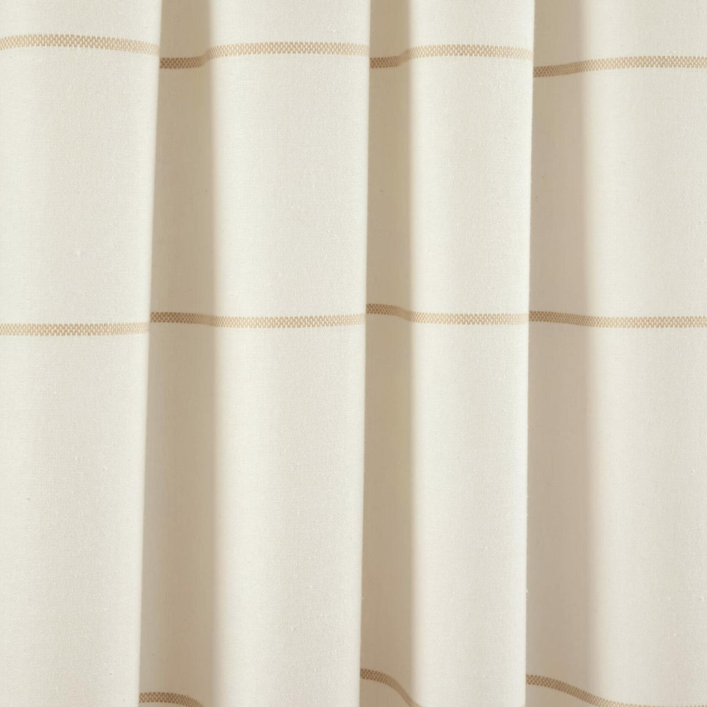 Decorate your windows with a simple, yet classic design of the Lush Decor Farmhouse Boho Stripe Woven Tassel Yarn Dyed Cotton Blend Curtains. 5 thin stripes are woven into the fabric with large tassels on the ends of each side. A simple design and some charming tassels give these curtains a perfectly balanced chic farmhouse style. The slight pop of color from this set can inspire decor for the rest of your space. These light filtering curtains for bedroom provide moderate privacy while helping to filter sunlight, allowing a soft glow to fill the space. Crafted from a 70% recycled cotton/30% recycled polyester fabric blend, exclusive of decoration. Sold as 2 panels, each measuring 42 inches wide in multiple length options. These drapes offer seamless installation with a 3" rod pocket, allowing you to easily slide it onto your curtain rod or using clip rings (not included). To care for these living room curtains, we recommend to dry clean only.