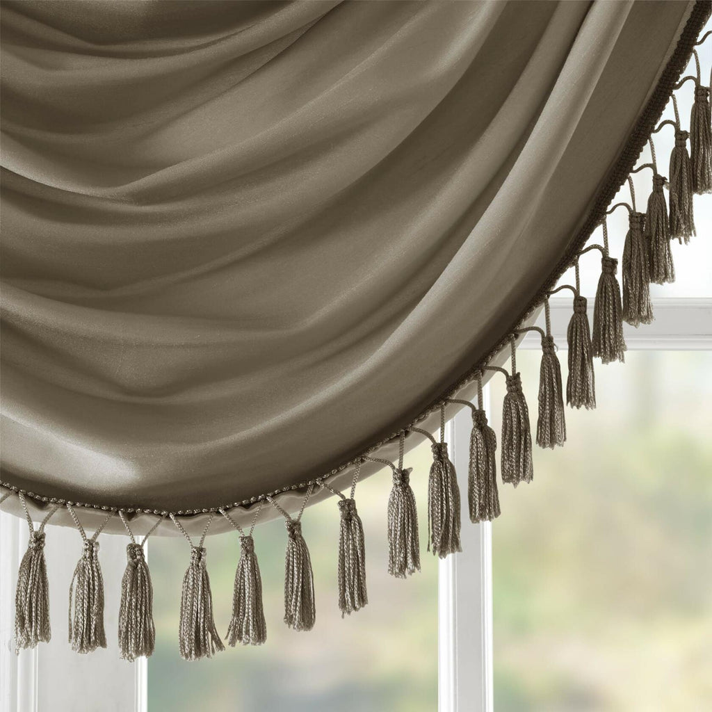 Madison Park Elena Waterfall Embellished Rod Pocket Valance , Faux Silk Valances for Window , 38X46" , Bronze