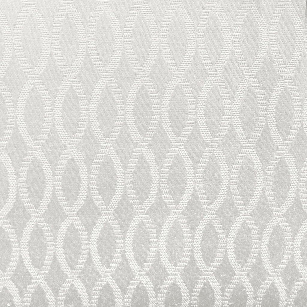 - Interlocking geometric design on solid, textured Jacquard fabric