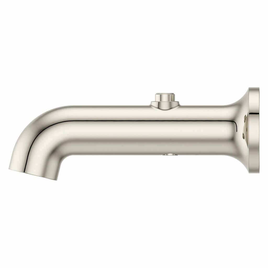 Create a sleek and minimalistic aesthetic with this integrated diverter tub spout from the Modern Round collection. Featuring smooth, curved lines that offer a feeling of elegance and simplicity, this contemporary look seamlessly complements modern style bathrooms. It's an ideal choice for those who appreciate and streamlined style Pfister Tbs-06Shw Features: Covered under Pfister's limited Constructed of metal for reliability finish will resist rust and corrosion through everyday use Coordinates with products from the ModernRound line seamlessly Tub spout equipped with a classic "pull-up" style diverter Unrestricted flow rate allows for rapid filling of the tub All hardware required for installation is included Pfister Tbs-06Shw Specifications: Height: 2-11/16" (from top to bottom) Length: 7-7/8" (from front to back) Width: 2-11/16" (from left to right) Spout Reach: 7-1/8" (from wall to center of spout outlet)