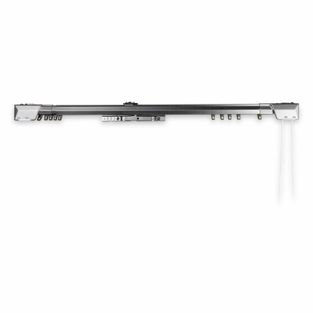 This center open heavy duty silver traverse rod is designed for use with pinch pleat draperies. High quality smooth traverse operation; superior slide fit between inner and outer rod.