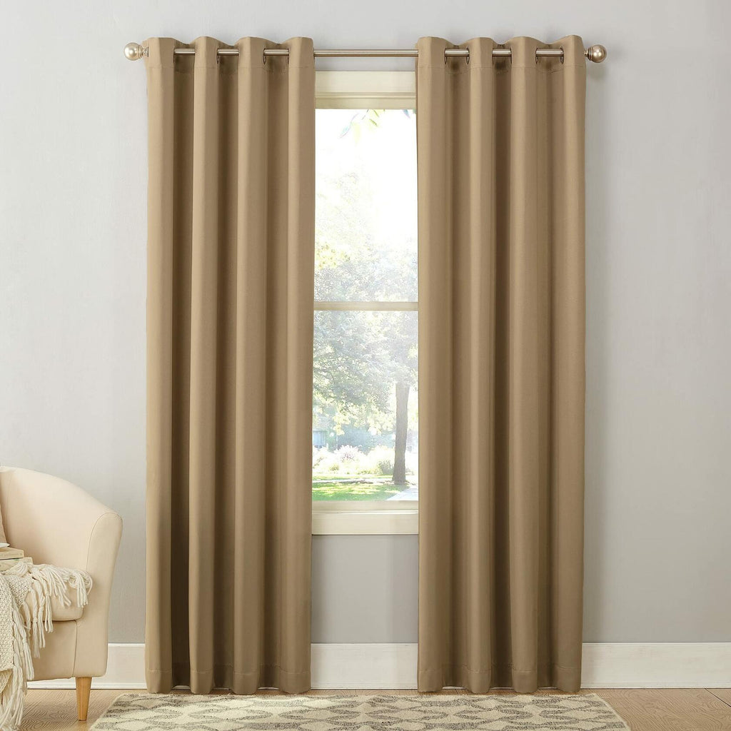 Description Sun Zero Barrow Energy Efficient Curtains bring style and energy efficiency to any home. The woven solid design with an easy to hang grommet-top offers a classic style that fits in with any room decor while reducing light and noise for better sleep; help keep your home cooler in the summer and warmer in the winter. Room darkening panels are made of materials that reduce light, and considerably darken the room. Some light will show through. These materials do not allow a view through and provide complete privacy. The darker the color the better the light reducing capabilities. Sold individually. Hang on a rod up to 1.5 inch in diameter. Polyester. Washable. Imported.